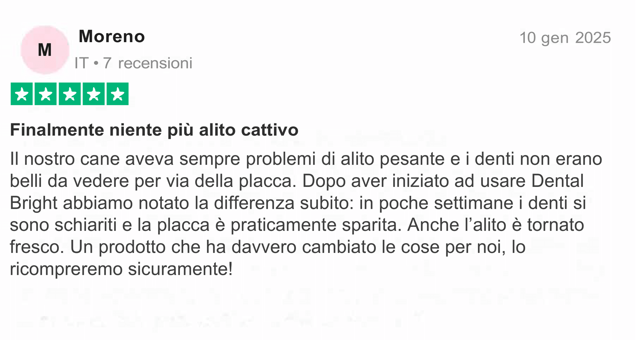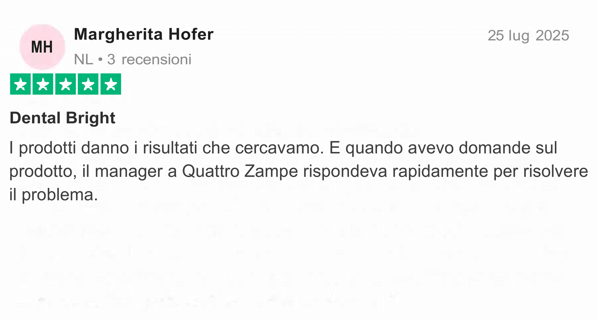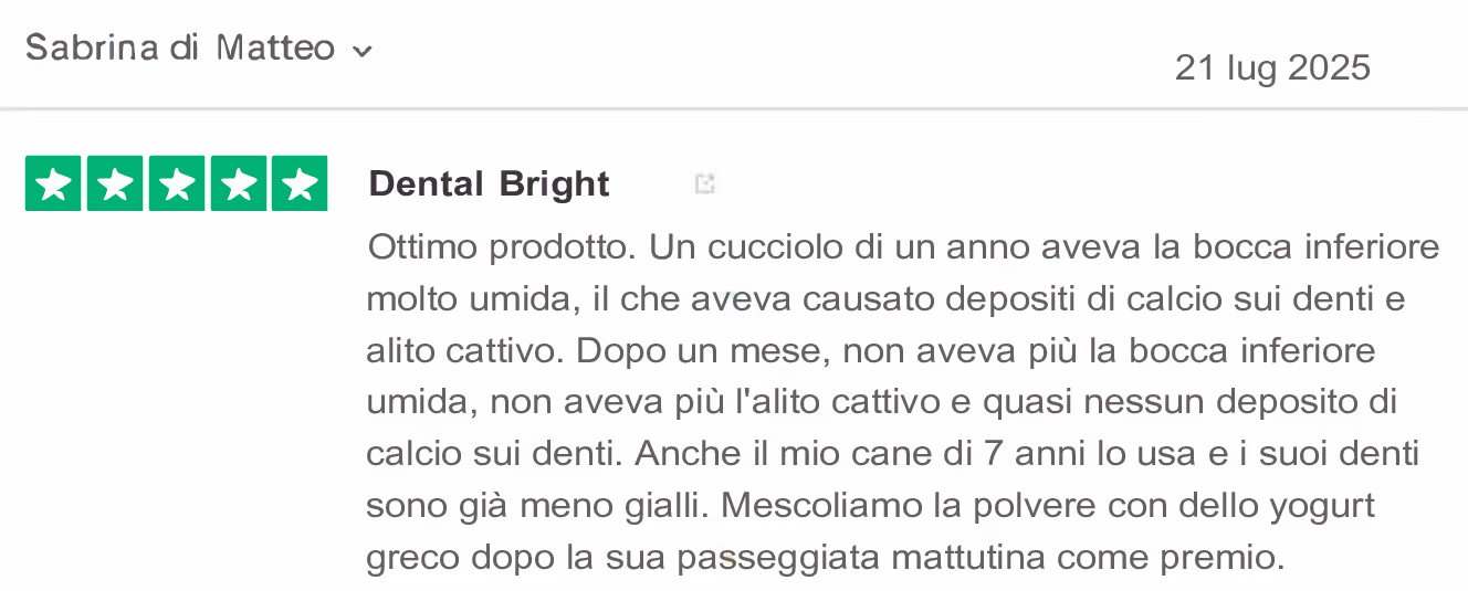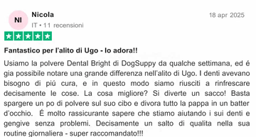 1. Siamo orgogliosi di essere stati valutati come il miglior marchio di integratori per cani su Trustpilot, grazie a migliaia di proprietari di cani soddisfatti. Con oltre 11.000 recensioni entusiastiche e un punteggio impressionante di 4,6/5, dobbiamo tutto questo ai nostri fantastici clienti!