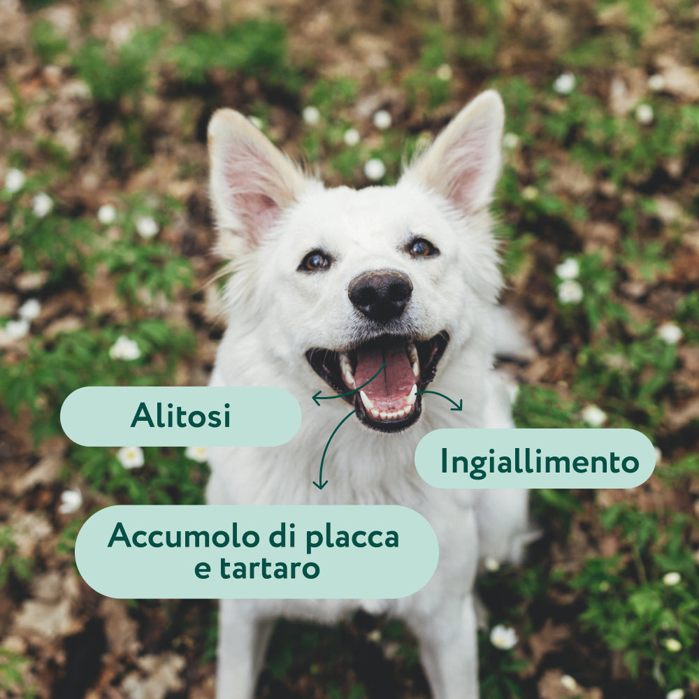 Favorisce lāalito fresco. Elimina placca e tartaro accumulati.