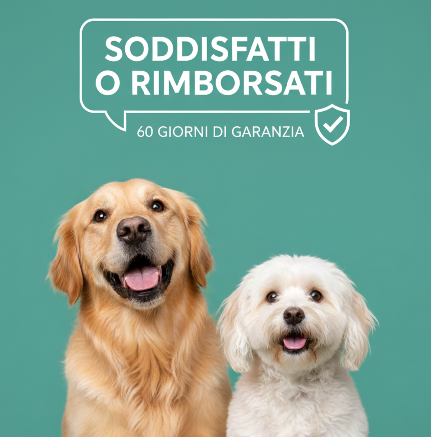 Qui a DogSuppy, siamo fieri di offriere i 60 giorni soddisfatti o rimborsati garatiti su tutti I nostri integratori. Questa garanzia ti da due mesi per vedere in prima persona quanto migliora la salute dei nostri amici pelosi. Nel caso tu non sia soddisfatto con i risultati dopo due mesi, inviaci un email a aiuto@dogsuppy.com, e ti rimborseremo lāordine senza problemi.